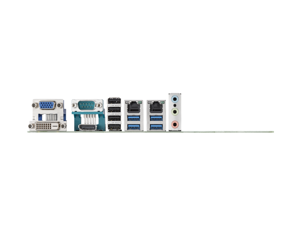 支持雙顯: VGA, DP, DVI, eDP, LVDS (可選) 和 2 x GbE LAN