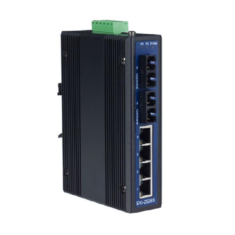 研華EKI-2526S 4+2光纖端口單模非網管型工業以太網交換機