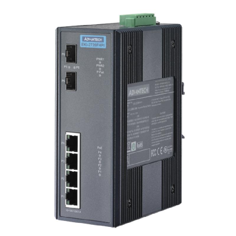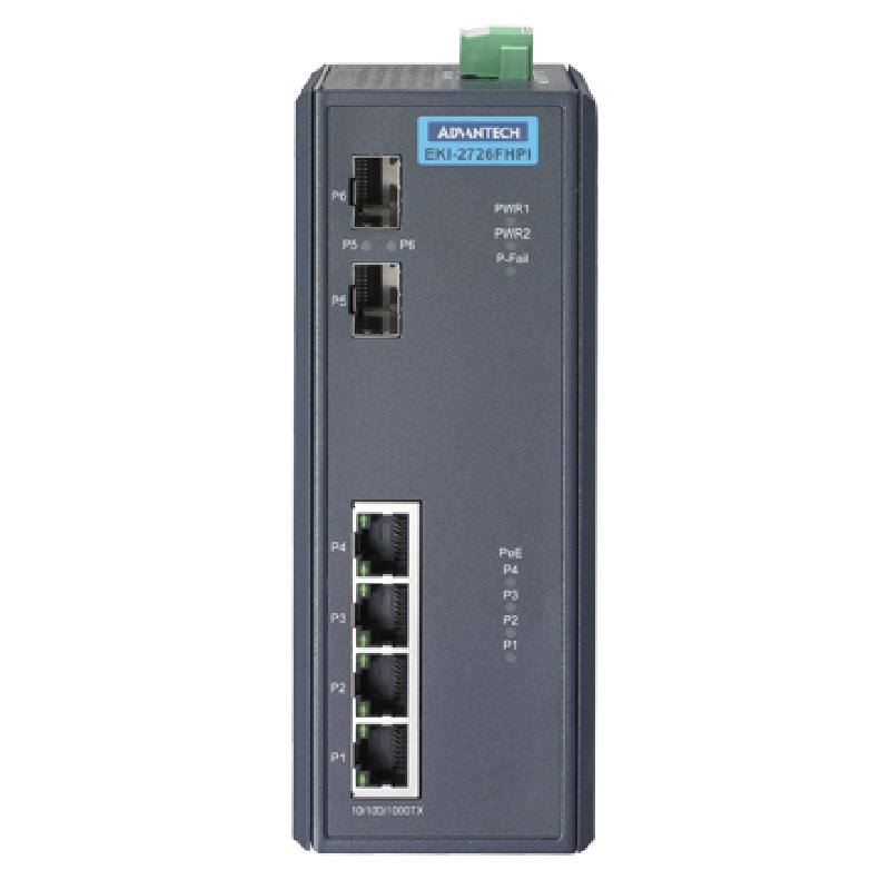 研華EKI-2726FHPI 4G+2 SFP W/ 4 IEEE 802.3 大功率寬溫 PoE 工業(yè)以太網(wǎng)交換機(jī)