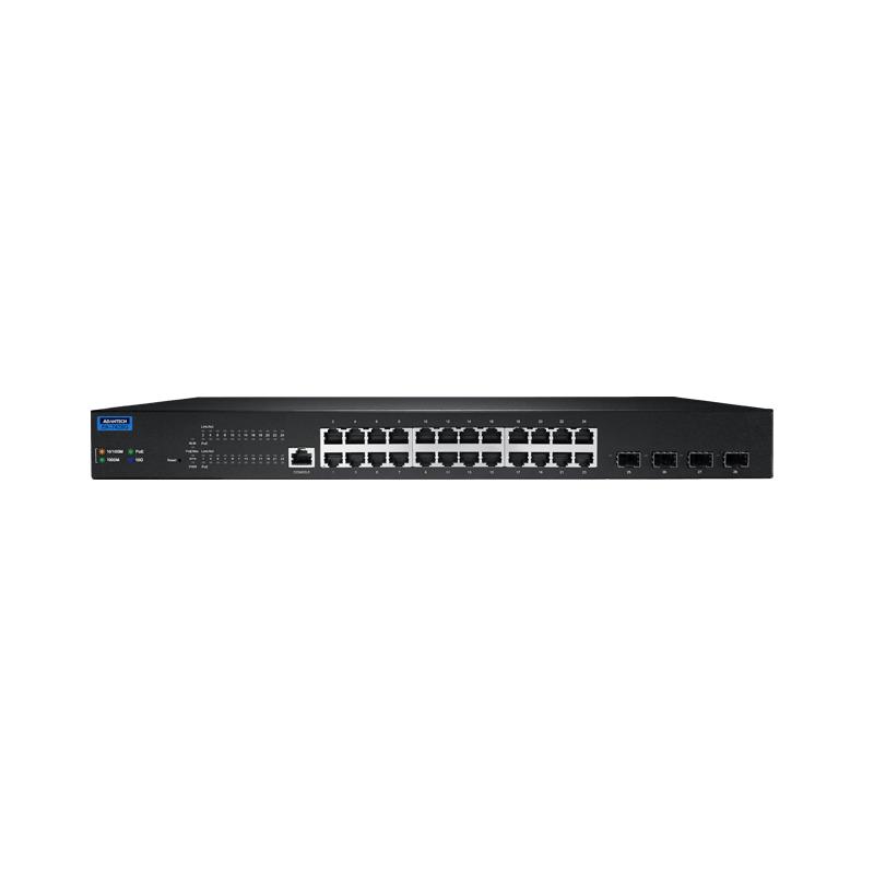 Supports 24 IEEE802.3af/at PoE ports (EKI-7428G-4XP)