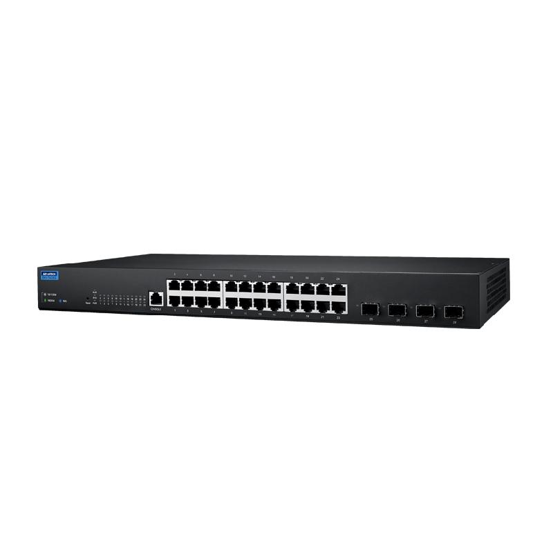 The EKI-7248G-4X is equipped with 24 Gigabit Ethernet ports plus 4 10G SFP+ ports, supporting up to 60°C wide operating temperature against the harsh environment.