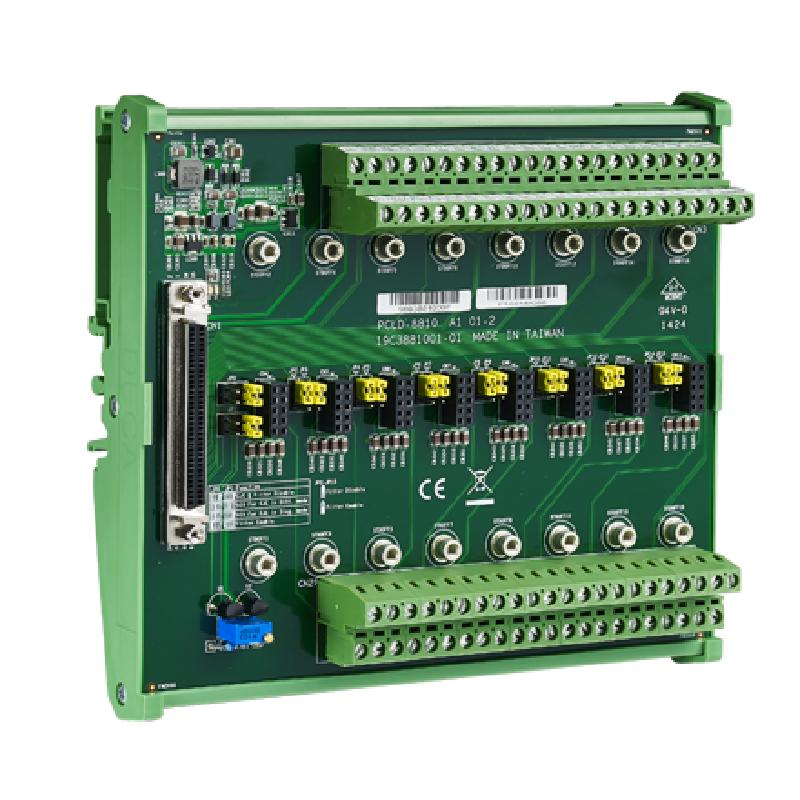 • PCLD-8810I 設(shè)計(jì)用于將多功能卡與 68 針 SCSI-II 連接器相匹配,例如 PCI-1710/1710L/1710HG/1710HGL/1711/1711L/1716/17416L/1741U/1742U 卡。PCLD-8810E 設(shè)計(jì)用于將多功能卡與 68 針 SCSI-II 連接器(如 PCIE-1810/1816/1816H 卡)相匹配。此螺釘端子板還包括 冷端傳感電路,允許從熱電偶傳感器直接測(cè)量。結(jié)合軟件補(bǔ)償和線(xiàn)性化,適用于每種熱電偶類(lèi)型。 由于其特殊的PCB布局,您可以安裝PCLD-8811來(lái)構(gòu)建自己的信號(hào)調(diào)理電路。
